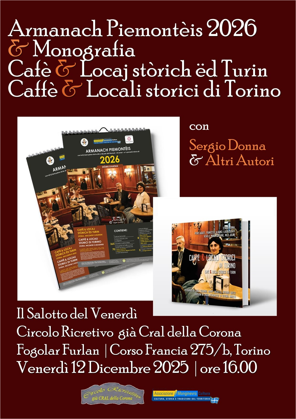 12 DIC VENERDI' ore 16.00 | Presentazione da parte di Monginevro Cultura a cura del Circolo ricreativo della Corona | |||