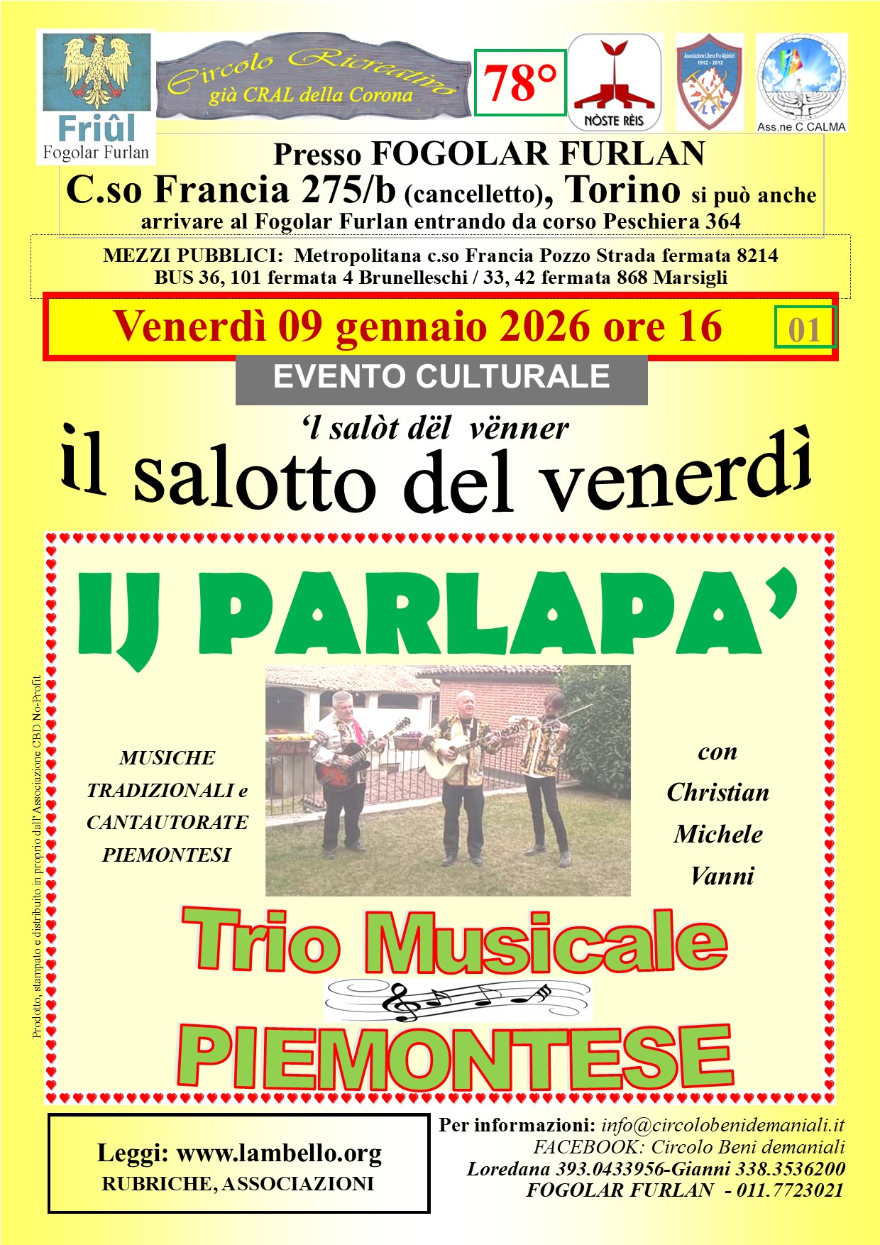 9 GEN VENERDI' ore 16.00 | TRIO MUSICALE PIEMONTESE musiche tradizionali piemontesi a cura del Circolo ricreativo della Corona | |||