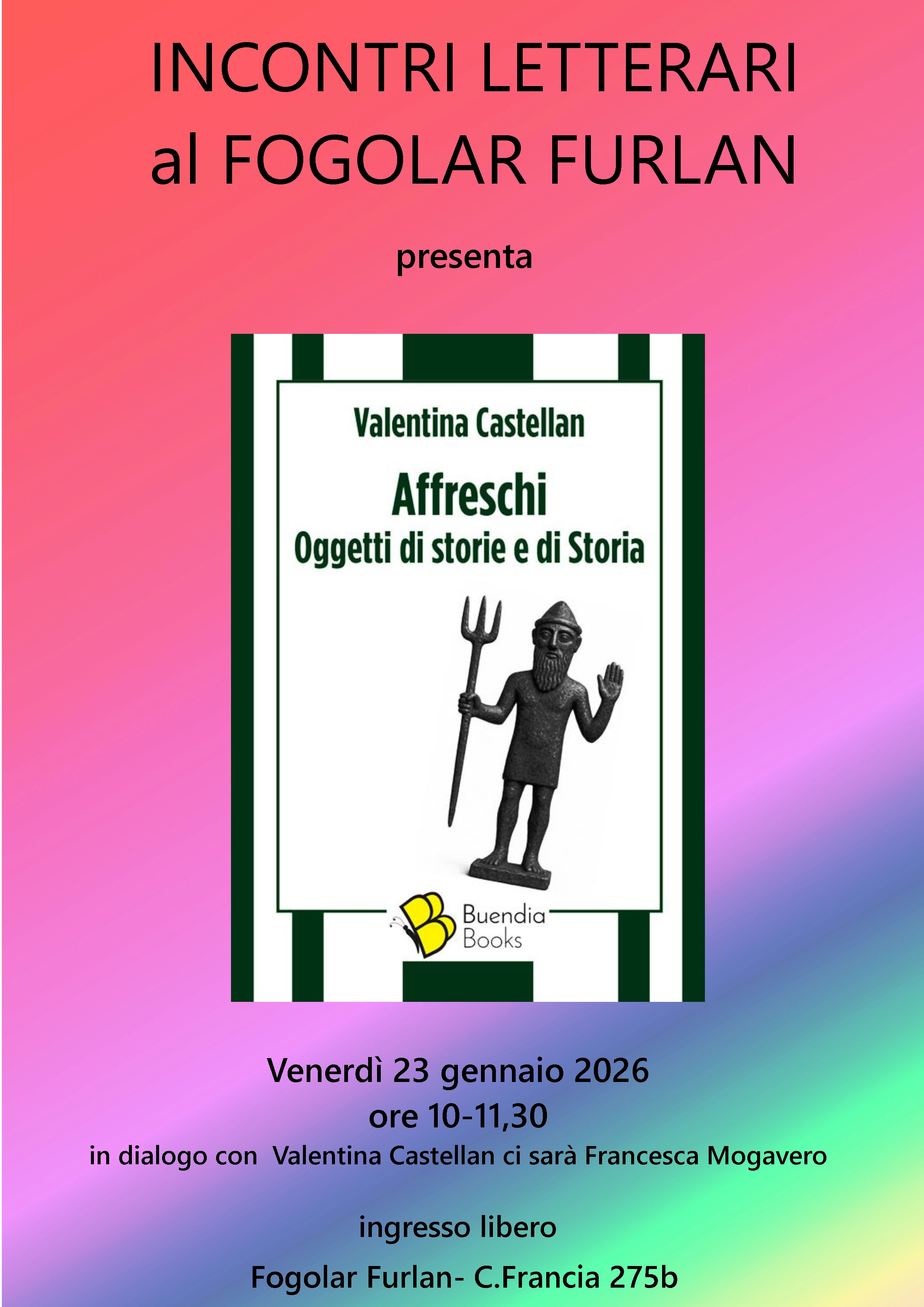 23 GEN VENERDI' ore 10.30 | Oggetti di storie e di Storia conferenza dell'autrice Valentina CASTELLAN a cura dell'associazione FOGOLAR FURLAN | |||