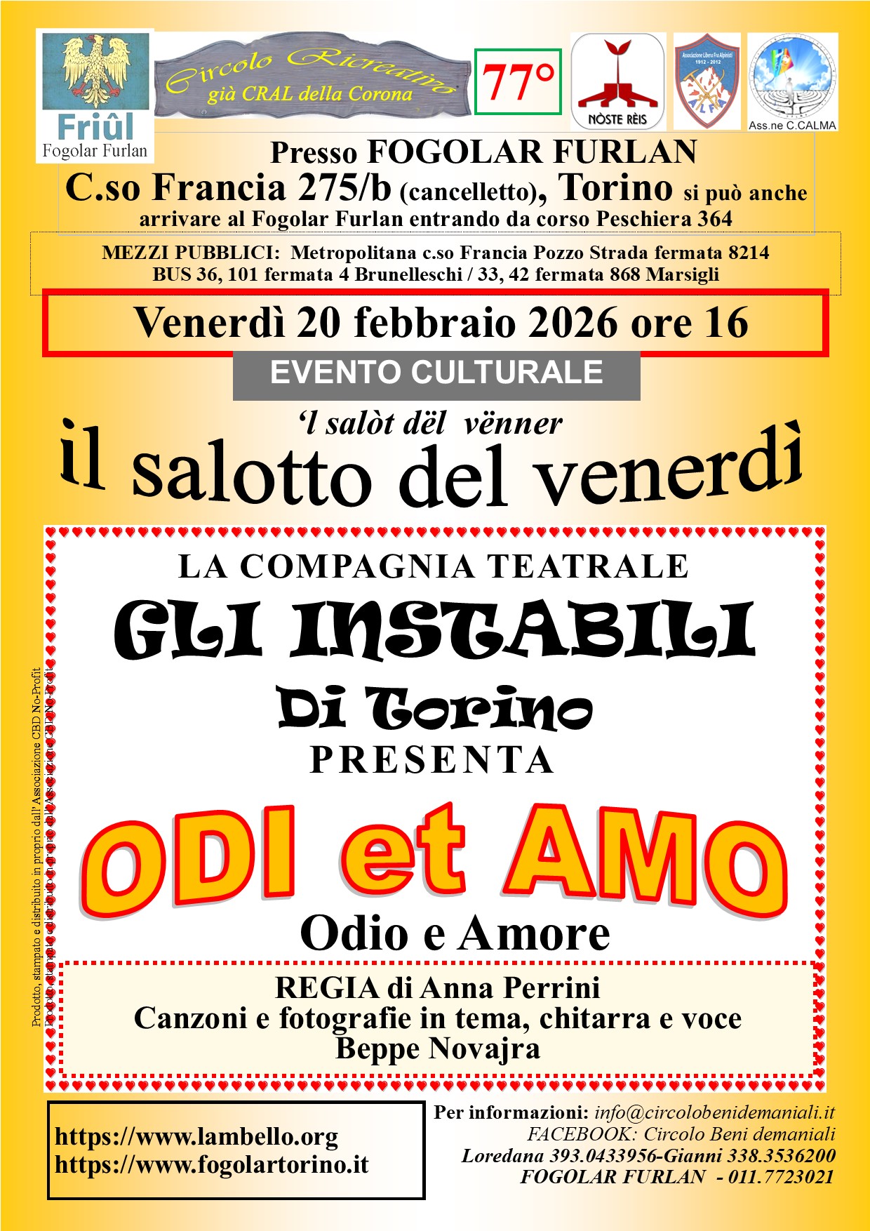 20 FEB VENERDI' ore 16.00 | con la compagnia teatrale GLI INSTABILI DI TORINO a cura del Circolo ricreativo della Corona | |||