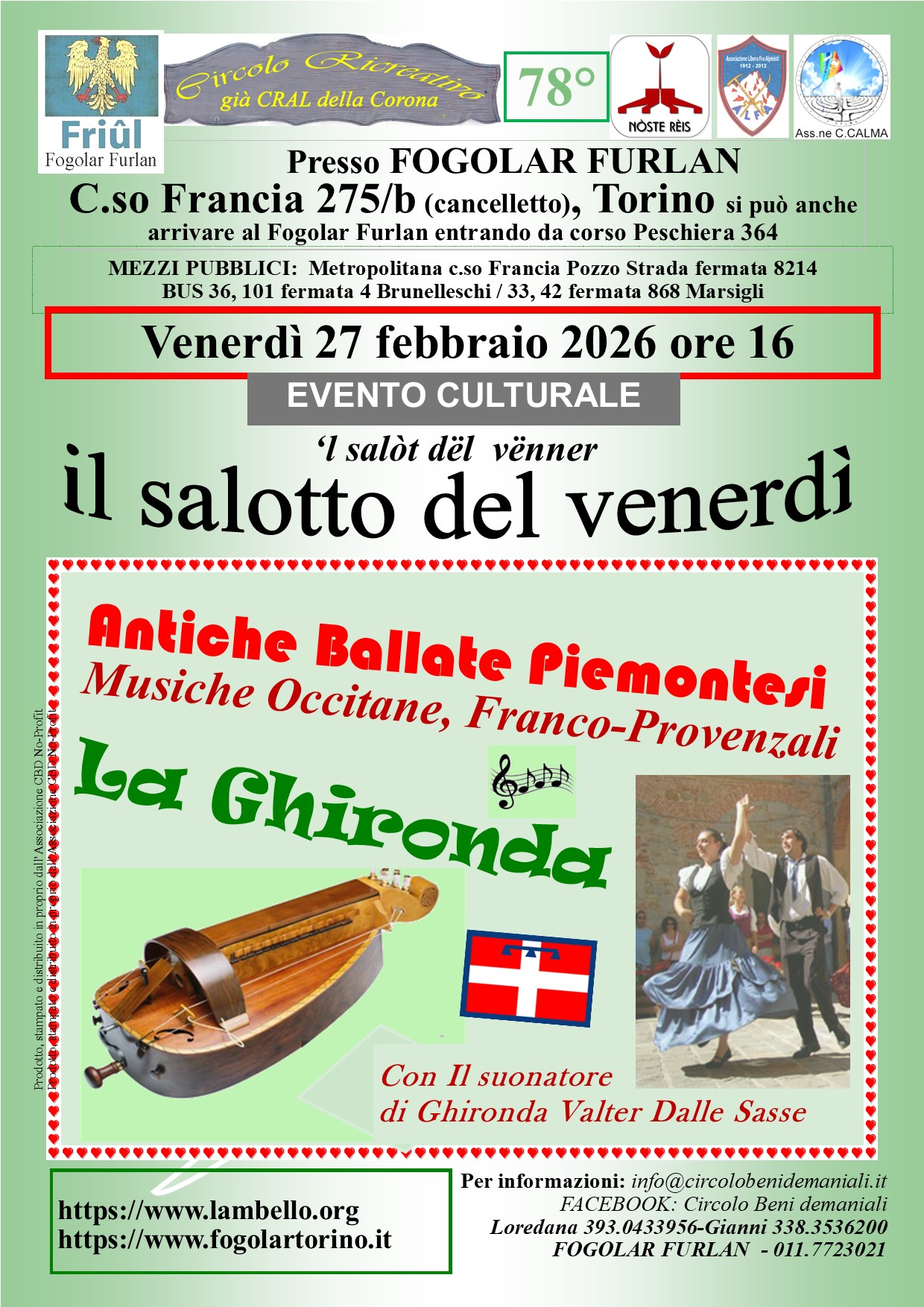 27 FEB VENERDI' ore 16.00 | con Valter DALLE SASSE suonatore della ghironda a cura del Circolo ricreativo della Corona | |||