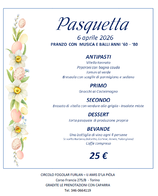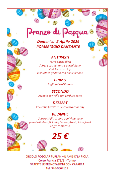 25 APR DOMENICA ore 12.00 | PRANZO 25 APRILE Pomeriggio musicale con Christian BALLETTO a cura de J'AMIS D'LA PIÒLA | |||