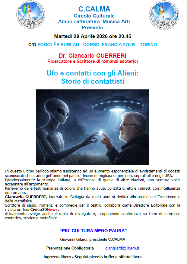 28 APR MARTEDI' ore 20.45 | Storie di contattisti Conferenza del dott. Giancarlo GUERRERI a cura dell'associazione C.CALMA | |||