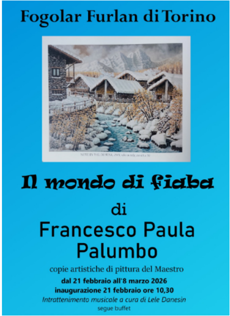 21 FEB SABATO ore 10.30 | Copie artistiche del Maestro Francesco PAULA PALUMBO Intrattenimento musicale di Lele DANESIN a cura dell'associazione FOGOLAR FURLAN Segue BUFFET | |||