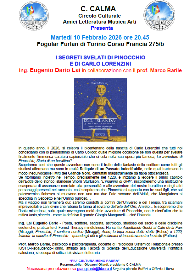 10 FEB MARTEDI' ore 20.45 | ing. Eugenio Dario LAI prof. Marco BARILE a cura dell'associazione C.CALMA | |||