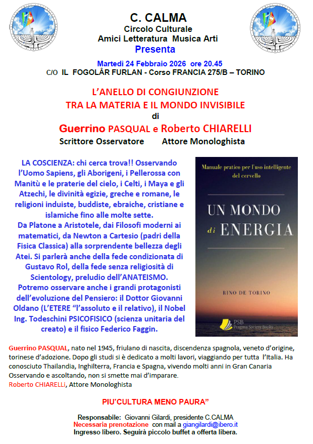 24 FEB MARTEDI' ore 20.45 | Guerrino PASQUAL e Roberto CHIARELLI a cura dell'associazione C.CALMA | |||